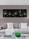 Esta obra artística presenta una disposición simétrica de flores de loto en una paleta completamente monocromática de negros y grises. Cada flor está capturada con un detalle exquisito, destacando las texturas y formas únicas de los pétalos y los tallos que se arquean con una elegancia natural. El fondo oscuro intensifica el dramatismo de cada silueta, proporcionando un contraste fuerte que enfatiza la forma y la estructura de las flores. Este diseño simple pero impactante ofrece una interpretación contemporánea del clásico tema floral, perfecto para un ambiente moderno y sofisticado.