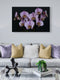 Esta elegante y sofisticada imagen muestra un grupo de orquídeas púrpuras en plena floración, destacándose dramáticamente contra un fondo oscuro. Las orquídeas, con sus pétalos delicadamente moteados y sus centros intrincados, ofrecen un contraste impresionante que resalta su belleza exótica. Los detalles finos de las flores, desde los bordes curvos hasta los estambres dorados y anaranjados, son capturados con gran precisión, permitiendo apreciar la fragilidad y perfección de cada orquídea. La oscuridad del fondo acentúa aún más los tonos suaves y las texturas de las flores, creando una atmósfera de misterio y lujo. Esta obra es ideal para aquellos que desean añadir un toque de elegancia y sofisticación a sus espacios interiores.