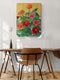 Esta encantadora pintura captura la alegre exuberancia de un jardín de zinnias en plena floración. Las flores, en tonos vibrantes de rojo, rosa y naranja, se destacan maravillosamente contra un fondo dorado que agrega calidez y profundidad a la escena. Las hojas verdes, pintadas con detallada precisión, complementan perfectamente las flores, creando un equilibrio visual armonioso. Ideal para quienes desean traer un toque de naturaleza y color a sus espacios, esta obra es perfecta para decorar salas de estar, comedores o áreas de entrada, infundiendo vida y energía en cualquier ambiente.
