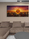 Esta impresionante pintura captura un vasto campo de girasoles bajo la cálida luz de un atardecer. En primer plano, un girasol majestuoso se erige con sus pétalos dorados resplandeciendo contra el cielo vibrante de tonos naranjas y púrpuras. La luz del sol poniente baña el campo, creando un juego de sombras y luces que añade profundidad y realismo a la escena. Los girasoles, con sus grandes y radiantes cabezas, parecen dirigirse hacia el espectador, invitándolo a sumergirse en la serenidad del paisaje. La mezcla de colores cálidos y la composición equilibrada transmiten una sensación de paz y belleza natural, capturando la esencia de un atardecer en el campo.