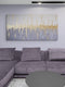 Es una obra que captura la esencia de un amanecer imaginario a través de la abstracción. La composición presenta una fusión de líneas doradas que caen sobre un tranquilo fondo púrpura, como si fueran los primeros rayos del sol iluminando el cielo al amanecer. La textura y el brillo del oro aportan un dinamismo que contrasta con la calma del tono púrpura, simbolizando la luz que se abre paso a través de la oscuridad, y sugiriendo un nuevo comienzo lleno de esperanza y posibilidades.