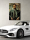 Esta impresionante obra de arte captura la esencia del éxito y la autoridad, representada a través de un retrato poderoso y carismático de un hombre en traje. La figura masculina se presenta con una expresión de confianza, sentado en una postura dominante que exuda liderazgo. El fondo de la imagen, adornado con símbolos de riqueza y poder, como el billete de dólar y el águila americana, refuerza la temática de éxito financiero y prestigio.