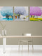 En este encantador set de cuadros decorativos, el artista emplea una paleta de colores diversa para resaltar la singularidad de cada pieza. En el primero, el árbol azul evoca una atmósfera de tranquilidad y serenidad. En el segundo, el árbol de color blanco-gris transmite una sensación de elegancia y simplicidad. Finalmente, en el tercero, el árbol rosa agrega un toque de delicadeza y romanticismo. La combinación de colores y la representación de los árboles en diferentes tonos crean un equilibrio armonioso y atractivo en esta serie de obras de arte.