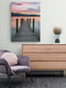 Es una impresionante fotografía que encapsula la calma apacible de un atardecer sobre un lago tranquilo. El muelle de madera, que se adentra en las aguas quietas, ofrece una perspectiva que invita al espectador a adentrarse en la escena. Los tonos suaves del cielo, con matices de rosa, lila y naranja suave, reflejan un cielo que se despide del día y saludan la llegada de una noche pacífica. La silueta suave de las montañas en la distancia añade un toque de majestuosidad y profundidad a la composición. Esta obra es ideal para aquellos que buscan un refugio visual que promueva la paz interior y la contemplación.
