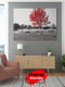 Dentro de un esquema monocromático, este cuadro se revela como una narrativa visual de contrastes, donde el blanco y negro establecen un fondo minimalista y atemporal. El árbol, de tronco esbelto, se erige como protagonista, mientras que sus hojas rojas inyectan vitalidad y emoción al conjunto, creando un punto focal de intensidad. Esta elección cromática, que conjuga lo austero con lo vivaz, invoca una meditación sobre la simplicidad y la profundidad de la naturaleza en medio del silencio visual.