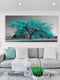 Este cuadro decorativo presenta una interpretación artística única y audaz. El árbol grande y frondoso, pintado en un tono turquesa vibrante, resalta sobre el fondo blanco y negro, creando un impacto visual poderoso. La elección del color turquesa para representar el árbol añade una sensación de misterio y surrealismo, mientras que el contraste entre los colores en blanco y negro crea una atmósfera sofisticada y contemporánea. En conjunto, la obra transmite una expresión artística original y cautivadora que invita a la contemplación y la reflexión.