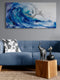 Es una obra artística contemporánea que retrata el poderío y la gracia de un torbellino marino capturado en una paleta de azules intensos y blancos puros. Esta pintura abstracta ofrece una inmersión visual en el océano, donde la espuma y la profundidad de las aguas se entrelazan en una danza de texturas y matices. La técnica de vertido y la manipulación experta de los pigmentos crean una ilusión de movimiento perpetuo, haciendo de esta obra una declaración dinámica para cualquier espacio. Perfecta para coleccionistas que deseen aportar un elemento de naturaleza dramática y contemplativa a su entorno.