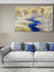 Este cuadro decorativo transmite una serena belleza con su interpretación única de un paisaje natural. En él, un sendero azul, metafóricamente posiblemente un río o camino iluminado, serpentea entre una vegetación densa y árboles robustos, proporcionando un punto focal visual. Los colores de la arena amarilla en la vegetación y los árboles dan un tono cálido al conjunto, creando un contraste efectivo con el sendero azul. La obra logra equilibrar los elementos abstractos y realistas, fusionándolos en una armoniosa imagen que invita a la contemplación y a la introspección.